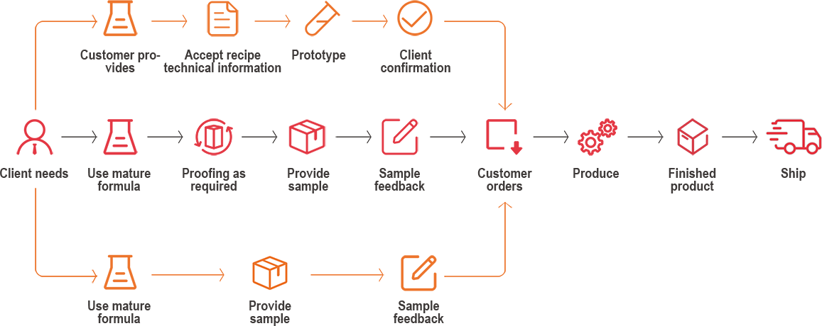 Jinqi can help customers to carry out product generation processing services for product formula development, proofing and processing; it can complete the entire process of brand registration, formula development, and three certificates for inspection.